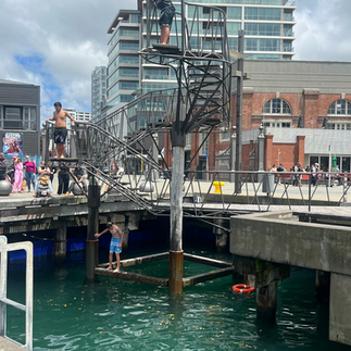 Outside the museum, in the heat of the harbourside there are cafes, a skate park and a multi-stage diving platform next to the harbour office. Here there were a group of teenage boys, supporting each other to jump from higher platforms and to make bigger splashes. Between them this developed into an orchestrated game where they all jumped from different points, resulting in a sequence of bigger and bigger splashes in quick succession. Serious, collaborative, fun; play as it should be with encouragement and cheering, but no edge. A delight to watch, and an intended spectacle, with no single "alpha" male or visible hierarchy.